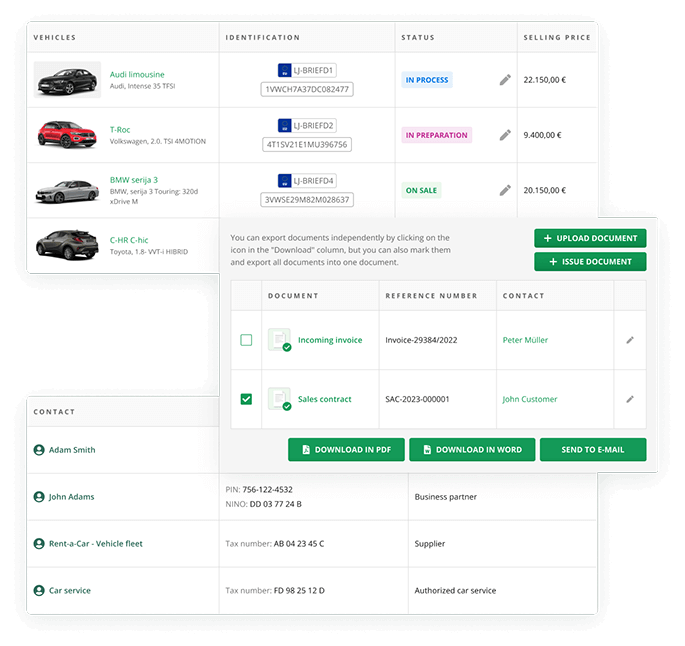 - Hitra prodaja vozil s vsemi podatki že v sistemu