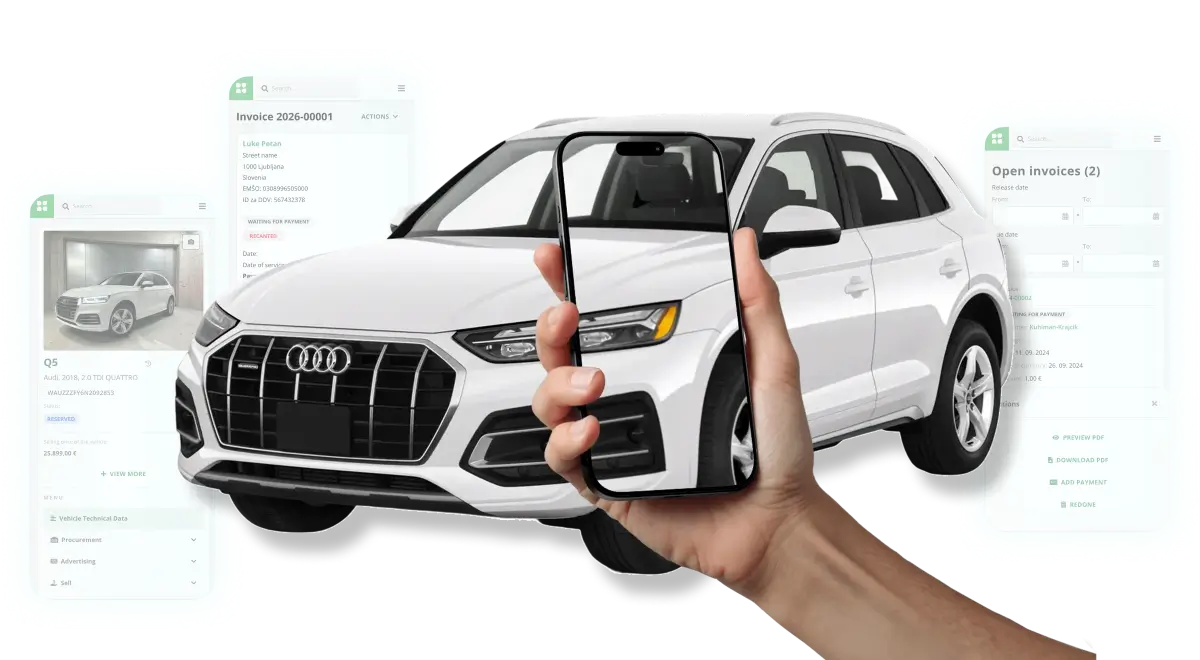 - Dostopaj do vozil, oglasov, dražb in kontaktov kjerkoli