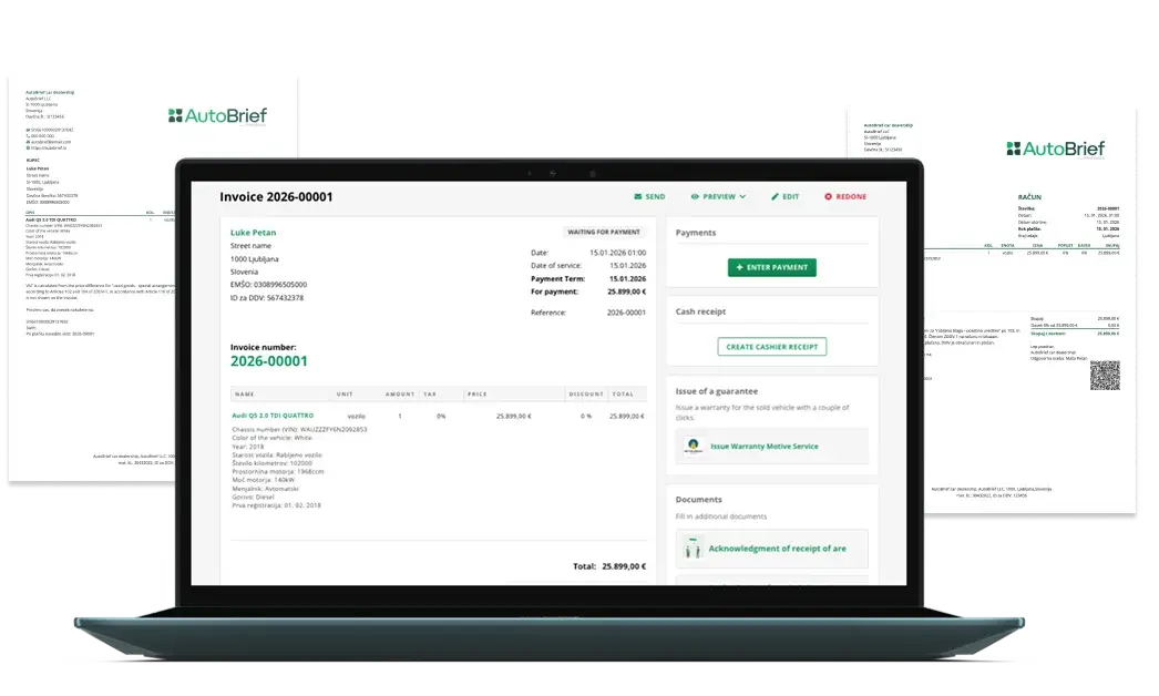 En vnos – vse povezano: vneseš VIN in takoj izdaš predračun, jamstvo, kredit …