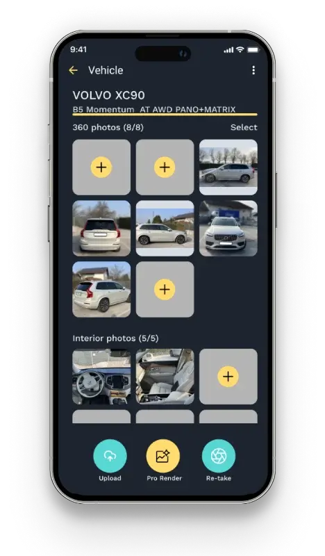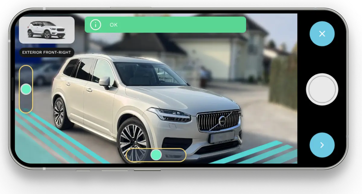 Aplikacija te korak za korakom vodi skozi proces fotografiranja, da zlahka zajameš vse ključne kadre vozila – od zunanjosti do notranjosti.