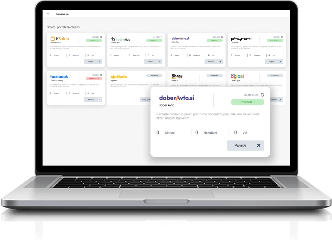 V AutoBrief izbereš vozilo, ki je pripravljeno za objavo, izbereš aktivne portale in s klikom na gumb OBJAVI razpršiš oglas kamorkoli želiš.
